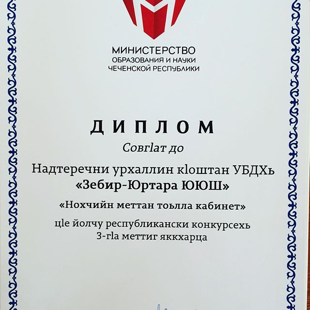 23.04.201623. 04. 2016 шарахь Нохчийн Республикан а, 1илманан а Министерство, Нохчийн дешаран белхалойн говзалла лакхаяккхаран институто Нохчийн Республикан дешар кхиоран институто "Нохчийн мотт ишколехь: 1аморан а, хьехаран а проблемаш" ц1е йолу республикански хьехархойн конференцехь Надтеречни урхаллин к1оштан УБДхь "Зебир-Юртара ЮЮШ" "Нохчийн меттан тоьлла кабинет" ц1е йолчу республикански конкурсехь 3-г1а меттиг яккхарца Диплом делира нохчийн меттан хьехархочунна Сапарова Лайла Алиевнина. "Зебир-Юртара ЮЮШ" белхалошна доккха совг1ат хилира баьккхинчу толамех. Дала т1аьхье беркате йойла!