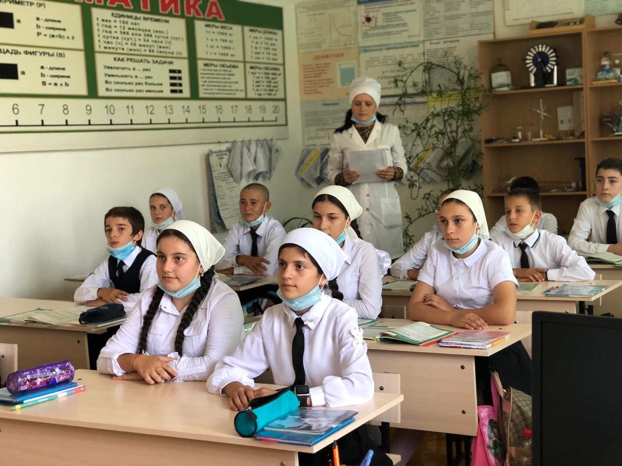 14.09.2020Школьной медсестрой Тарамовой Х.А. совместно с классными руководителями проведен «Урок здоровья» среди учащихся 6-8 классов. «Урок здоровья» проводился для того, чтобы дети знали, как вести себя в условиях сохранения рисков распространения новой коронавирусной инфекции, и были подготовлены к новым правилам безопасности. Соблюдение этих правил поможет школьникам сохранить не только свое здоровье, но и здоровье близких. Тарамова Х.А. рассказала учащимся как снизить риски заражения новой коронавирусной инфекции во время учебы. Правила очень простые и их может выполнить любой ребенок – нужно чаще мыть руки, пользоваться антисептиками, при чихании или кашле прикрывать рот и нос платком. Кроме этого, очень важно высыпаться, правильно питаться и делать гимнастику. Особое внимание было обращено на важность соблюдения мер предосторожности, начинать учебные занятия в разное время, носить с собой антисептик, не скапливаться у входа в школу, ежедневно измерять температуру.