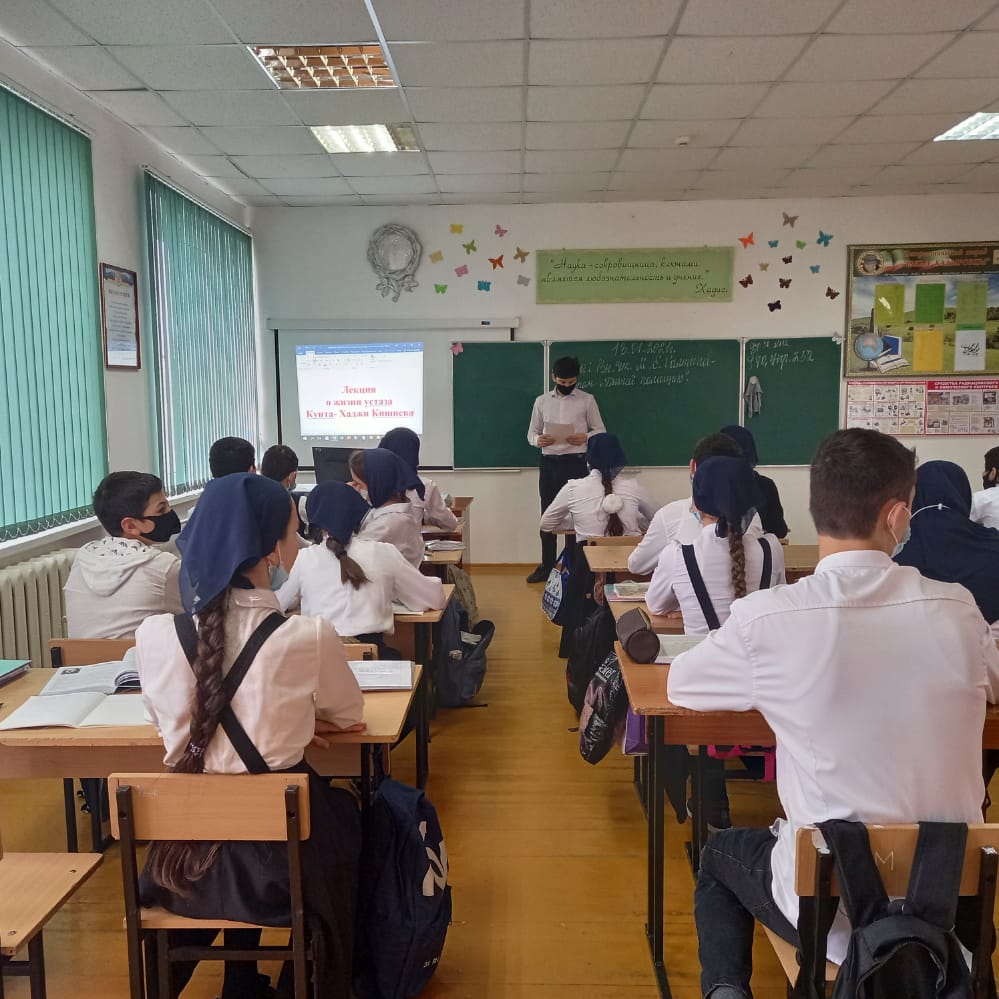 13.01.2021В МБОУ «СОШ с.п. Зебир-Юрт» прошли мероприятия, приуроченные ко Дню памяти и почитания Устаза Кунта-Хаджи Кишиева, да будет возвышена его святость. Педагогом-организатором по ДНВР Наурбиевым А. В. проведена беседа на тему: «История о жизни Кунта-Хаджи Кишиева», да будет возвышена его святость.
