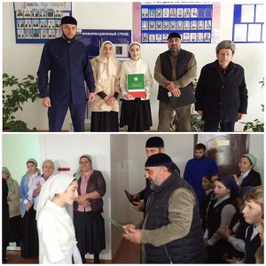 Заместитель муфтия района Мунаев А. А. посетил МБОУ "СОШ с. п. Зебир-Юрт" с целью вручения грамоты ученице 11-го класса Хубазовой И. Л., занявшей первое место в районном конкурсе "Тарикат".