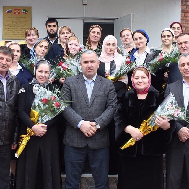 С 8 Марта женскую половину директорского корпуса поздравил начальник МУ "Управление образования Надтеречного муниципального района ЧР" Муцулханов Ильяс Султанович.