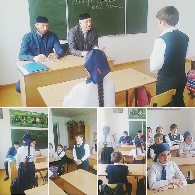 Организатор по ДНВиР МБОУ "СОШ с. п. Зебир-Юрт" А. В. Наурбиев провёл среди учащихся 5-го класса конкурс под названием "Знание основ Ислама"