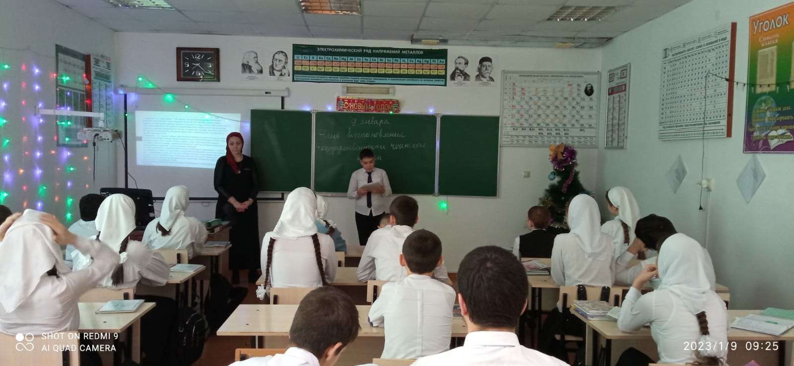 В ходе урока Хубазова А.М. рассказала историю издания Указа Президиума Верховного Совета о восстановлении Чечено-Ингушской АССР, благодаря чему чеченский народ был социально реабилитирован и восстановлен во всех правах, о том, как отмечают этот день в городах и селах Чечни, о его традициях и значимости праздника.