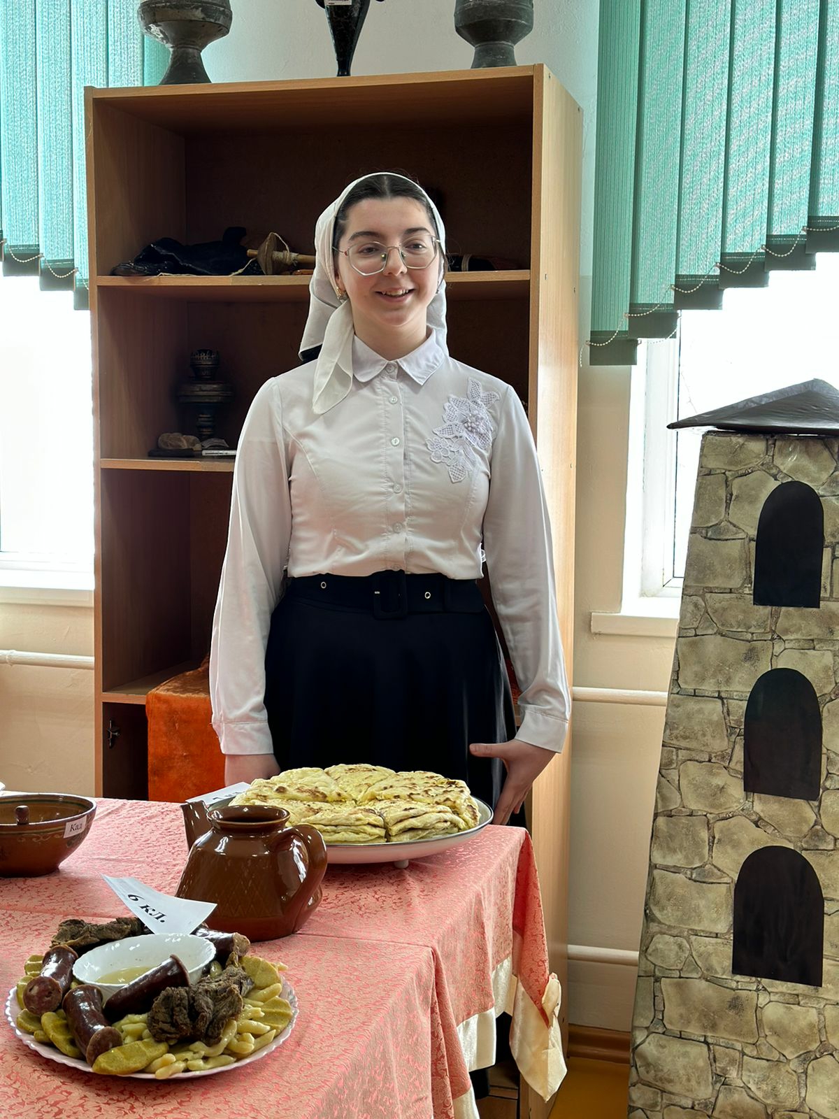 В МБОУ"СОШ с.п.Зебир-Юрт" в рамках Года чеченского языка прошёл конкурс "Лучший чтец знаменитых строк"...1-е место среди обучающихся 5-9классов заняла семиклассница Урузбиева Линда.Были приготовлены национальные блюда,выставлены предметы национального быта...