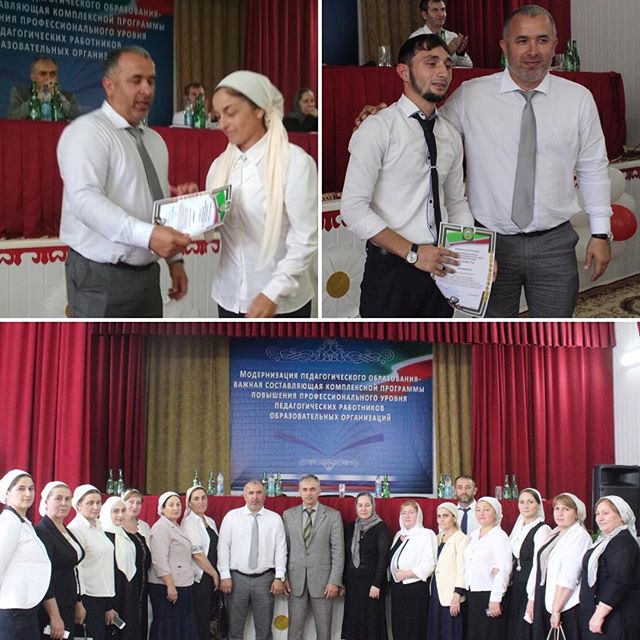 28.08.2017На базе МБОУ "СОШ №3 с.п. Знаменское" прошла ежегодная августовская педагогическая конференция на тему: "Модернизация педагогическая образования - важная составляющая комплексной программы повышения профессионального уровня педагогических работников образовательных организаций". В ходе конференции грамотами были награждены работники МБОУ "СОШ с.п. Зебир-Юрт": заместитель директора по воспитательной работе Дадаева Хеда Ахмедовна, учитель математики Кусиев Хизир Илесович, учитель русского языка и литературы Юсупхаджиева Зарема Висаниевна. Дала т1аьхье беркате йойла!