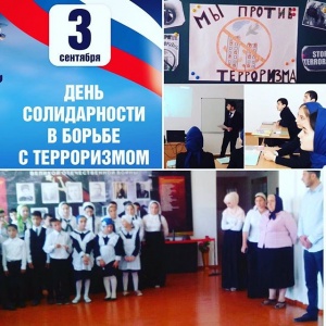 12.09.2017В МБОУ «СОШ с.п. Зебир-Юрт» прошли мероприятия, посвященные Дню солидарности в борьбе с терроризмом. Учителем ОБЖ Дикаевым М.Х. на уроках были показаны документальные фильмы и видеоролики, проведен инструктаж о порядке действий при угрозе террористического акта, при обнаружении веществ, которые могут являться биологически или химически опасными при возникновении пожара. Проведена работа по предупреждению терроризма и экстремизма на темы: «Обеспечение личной безопасности дома и на улице», «Правила поведения при угрозах террористических актов», «Меры безопасности при угрозе теракта», «Международный терроризм-угроза национальной безопасности». В школе оформлен информационный стенд по антитеррористической защищенности «О противодействии терроризму», «Терроризм - как он есть». Учителем ИЗО Хубазовой М.Н. проведен конкурс рисунков: «Мы против терроризма». Классными руководителями проведена работа по вопросу предупреждения терроризма и экстремизма: проведены Уроки Мира, классные часы и профилактические беседы на темы: «Правила поведения при угрозе теракта», «Формирование гражданского самосознания молодежи». Педагогом-организатором по ДНВР Наурбиевым А.В. проведена беседа с обучающимися 8-11 классов на тему: «Терроризм и его последствия». День солидарности в борьбе с терроризмом символизирует единение государства и общества в борьбе с таким страшным явлением, как терроризм. Россия в этот день отдает дань памяти тысячам соотечественников, погибшим от рук террористов.