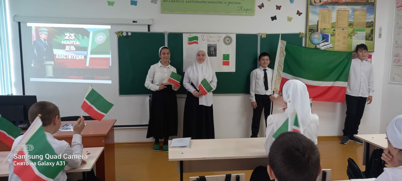 В МБОУ "СОШ с.п. Зебир-Юрт" в 6 классе проведена викторина "Символы Чеченской Республики, посвященная Дню Конституции Чеченской Республики. Викторина была разработана для проверки знаний обучающихся о Конституции Чеченской Республики, а также об истории и значении этого документа.