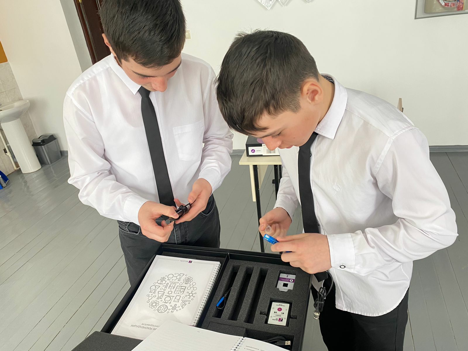 В 9-ом классе провели практические работы по Решение экспериментальных задач по теме «Электролитическая диссоциация». С помощью щупа по определению и содержанию ионов, в цифровом оборудовании, обучающиеся научились производить диссоциацию кислот, оснований и солей.