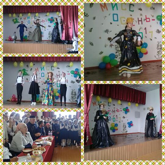 27.10.2017С целью формирования у обучающихся активной жизненной позиции, развития творческого направления, чувства прекрасного, в МБОУ «СОШ с.п. Зебир-Юрт» было проведено мероприятие «Мисс Осень». В мероприятии участвовали учащиеся 5-11 классов. Участницам нужно было подготовить визитную карточку «Вот такая я» - представление участниц;-конкурс «Хозяюшка» - приготовление кулинарных блюд с использованием овощей на осеннюю тему;-конкурс на лучший осенний наряд;-конкурс «Я вам спою». Выступления участниц оценивало жюри в составе: Наурбиева М.Н. (и.о. директора школы), Сапарова Л.А. (учитель чеченского языка и литературы), Урсабиева Р.А.(учитель нач.классов), Эльбазуров И.А. (учитель математики) и Юсупхаджиева З.В. (учитель русского языка и литературы). По итогам жюри титул «Мисс Осень» было присвоено Басхановой Раяне, ученице 11 класса. Остальным участницам присуждены титулы: «Мисс – Очарование», «Мисс – Грация», «Мисс – Зрительских симпатий», «Мисс- Улыбка», «Мисс-Артистизм» и «Мисс Обаяние».