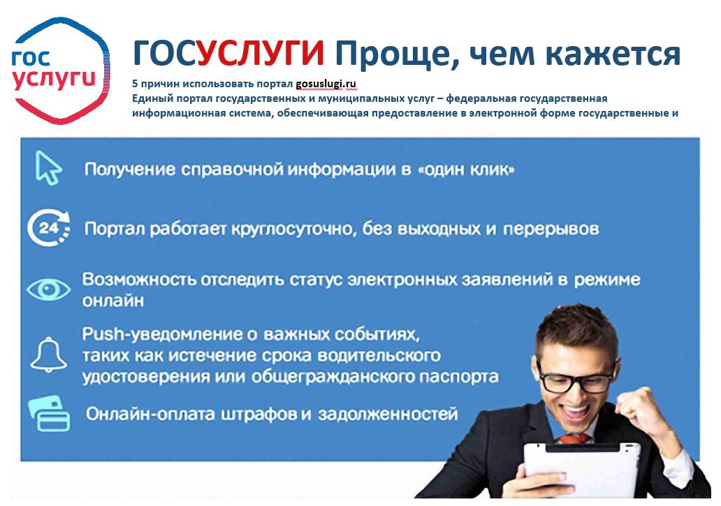 В-третьих, портал государственных услуг обеспечивает гражданам удобный и простой доступ к информации о том, как быстро и удобно получить те или иные услуги в органах исполнительной власти и местного самоуправления.