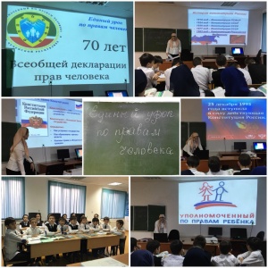 24.11.2018Среди обучащихся 6-11 классов МБОУ "СОШ с.п. Зебир-Юрт" учителем истории и обществознания Алиевой В.Р. проведен Единый урок по правам человека. Цель урока: дать обучающимся представление о правах и свободах человека и гражданина, ознакомить с Конвенцией о правах ребенка, с Декларацией прав человека, Конституцией Российской Федерации. Единый урок по правам человека был построен с учетом возрастных и психологических особенностей детей. Еще в юном возрасте дети должны понимать, что мы живем в гражданском обществе, что знания в области прав человека играют большую роль.